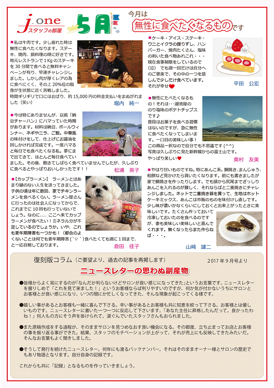 → お客様ニュースレターのスタッフブログの「お題」に参考使用可能 - 復刻版コラム(2017年9月号より)