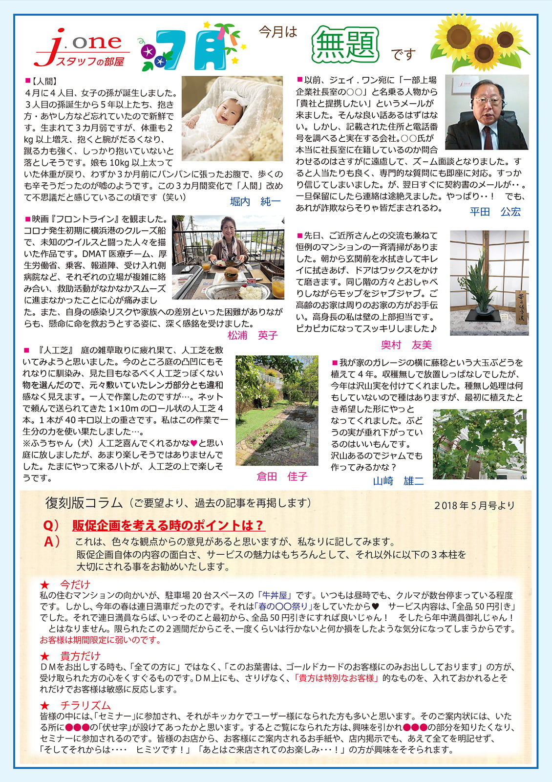 → お客様ニュースレターのスタッフブログの「お題」に参考使用可能 - 復刻版コラム(2018年5月号より)