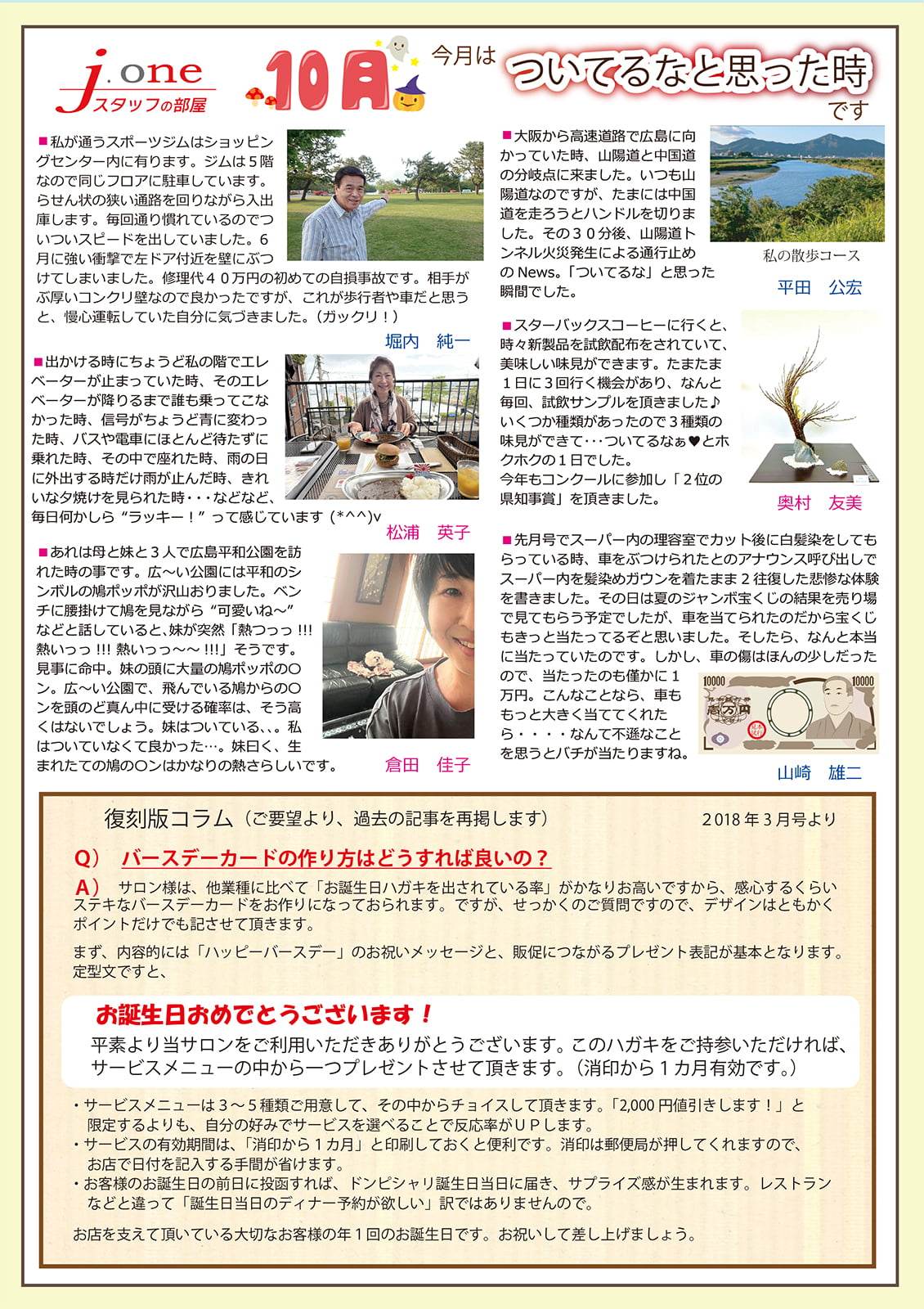 → お客様ニュースレターのスタッフブログの「お題」に参考使用可能 - 復刻版コラム(2018年3月号より)